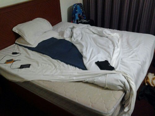 I arrived around 5pm at the Titiwangsa hotel near Tanah Rata-highland tea country. A traditional Chinese dinner and I was off to bed. My room, although clean, did not have a mattress–just a boxspring made up nicely with fine sheets. Nothing my sleeping pad can’t remedy. No hot water and the TV doesn’t work either, but who’s counting?