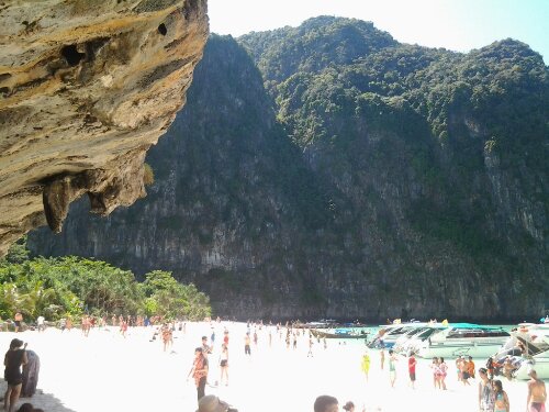 For 1000baht (about $30usd) I jumped on a full day island hopping tour. We visited Viking Cave, Maya Beach (pic above) where the movie “The Beach” was filmed, Monkey Beach and Ko Phi Phi Don–a legendary diving town in the Andaman Sea.